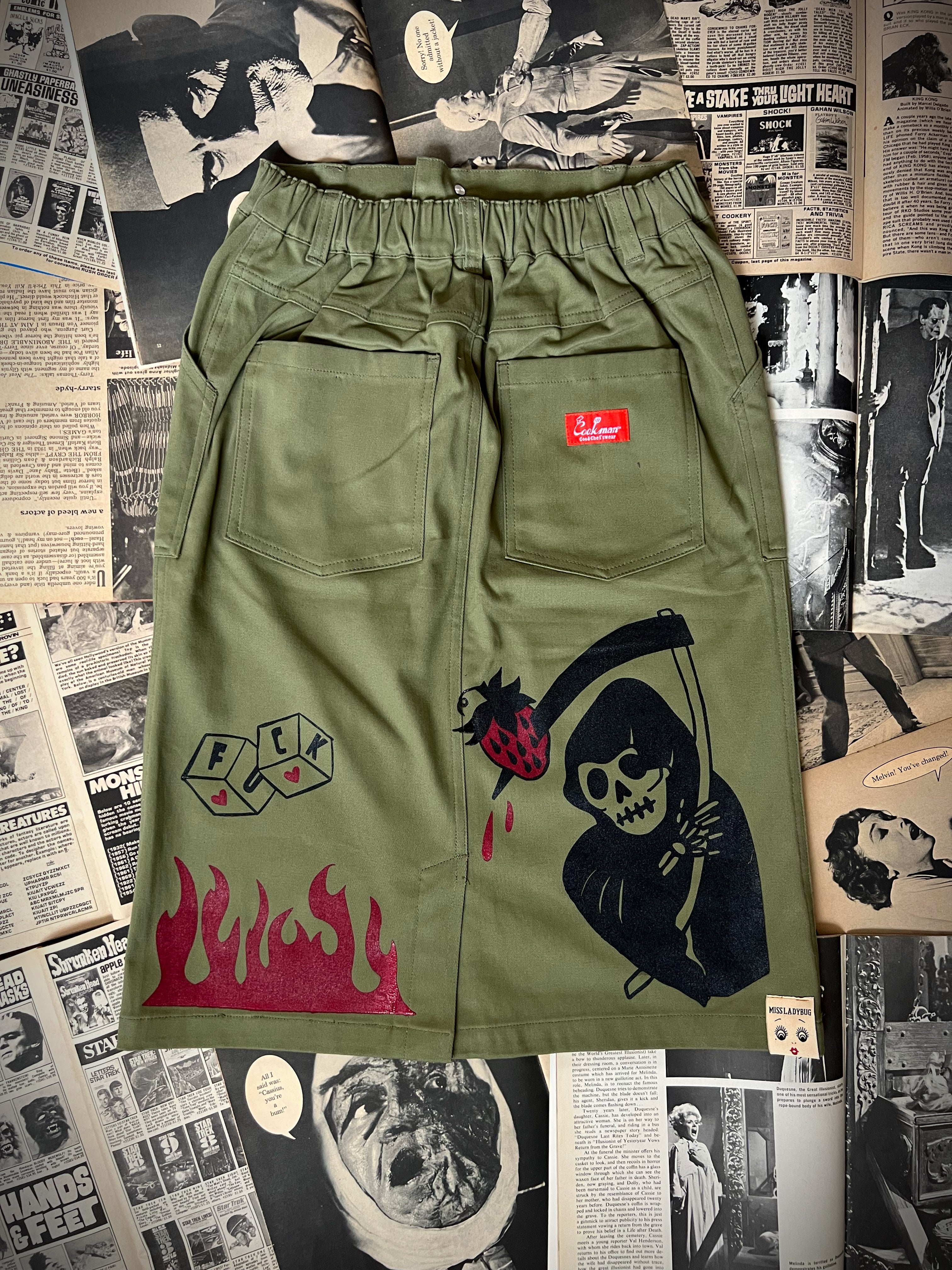 TATTOO FLASH PRINTED BAKER'S SKIRT *KHAKI